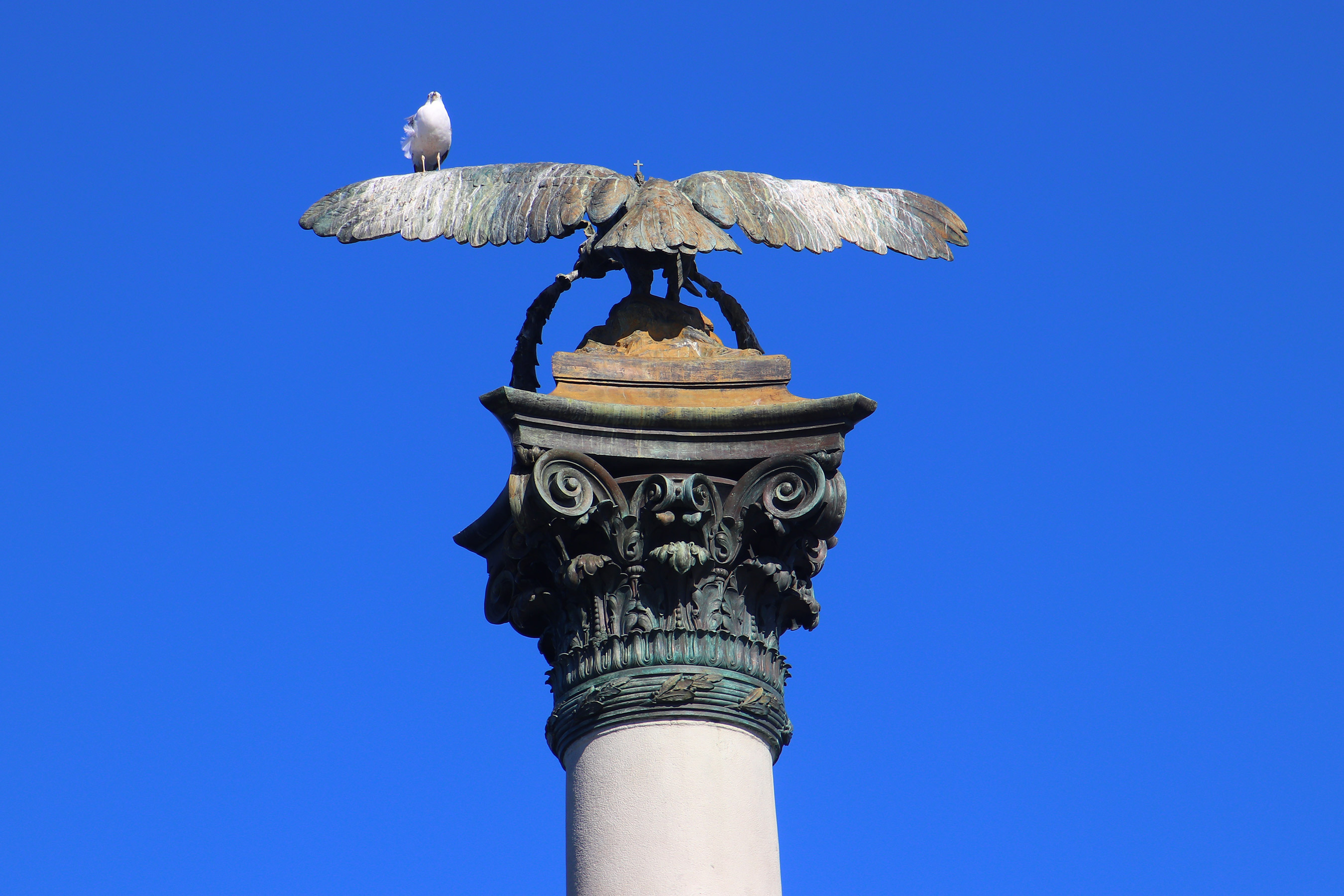 Памятник затопленным кораблям - навершие памятника и сидящая на нем черноморская чайка