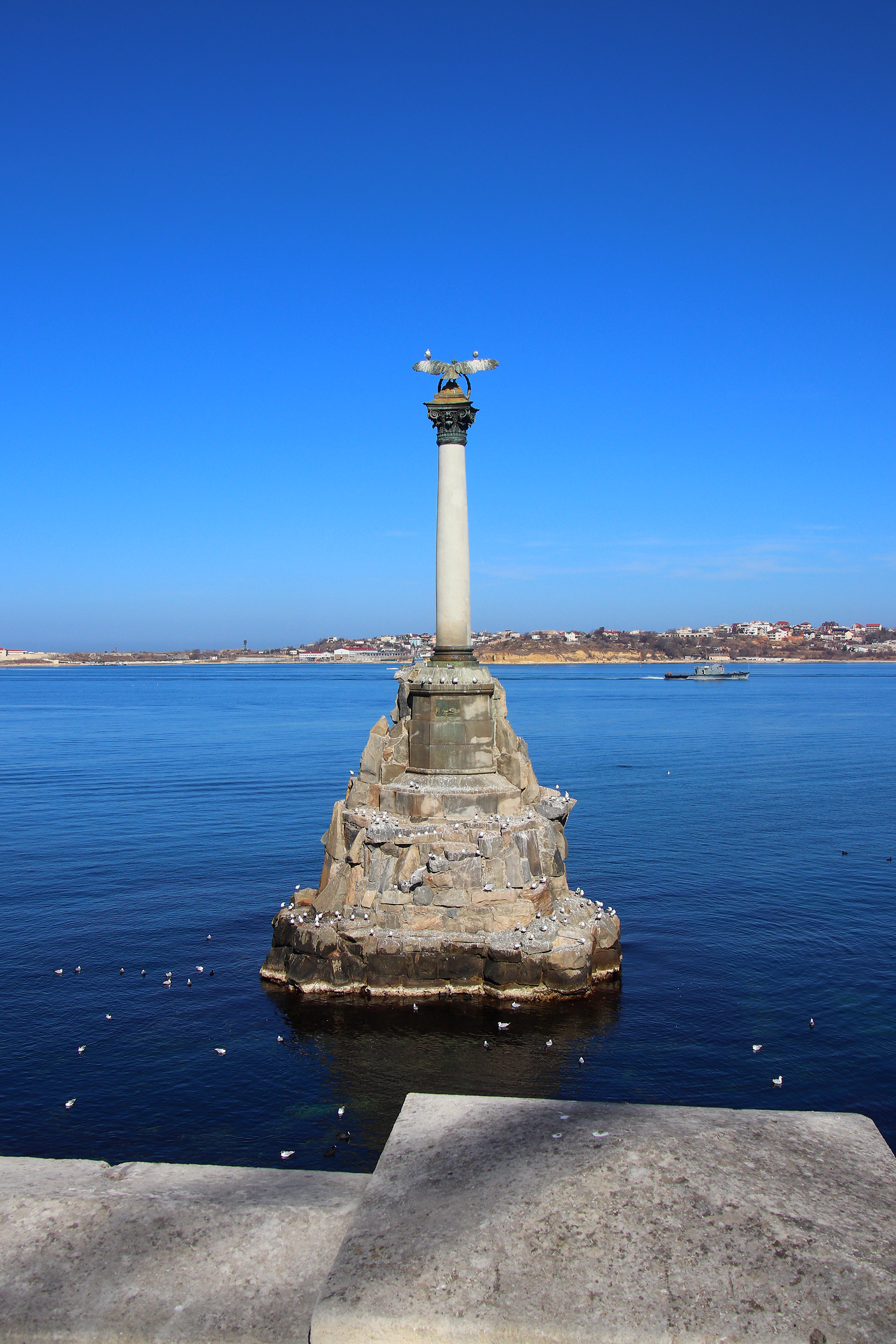 Памятник затопленным кораблям и Северная сторона Севастополя - вертикальный кадр