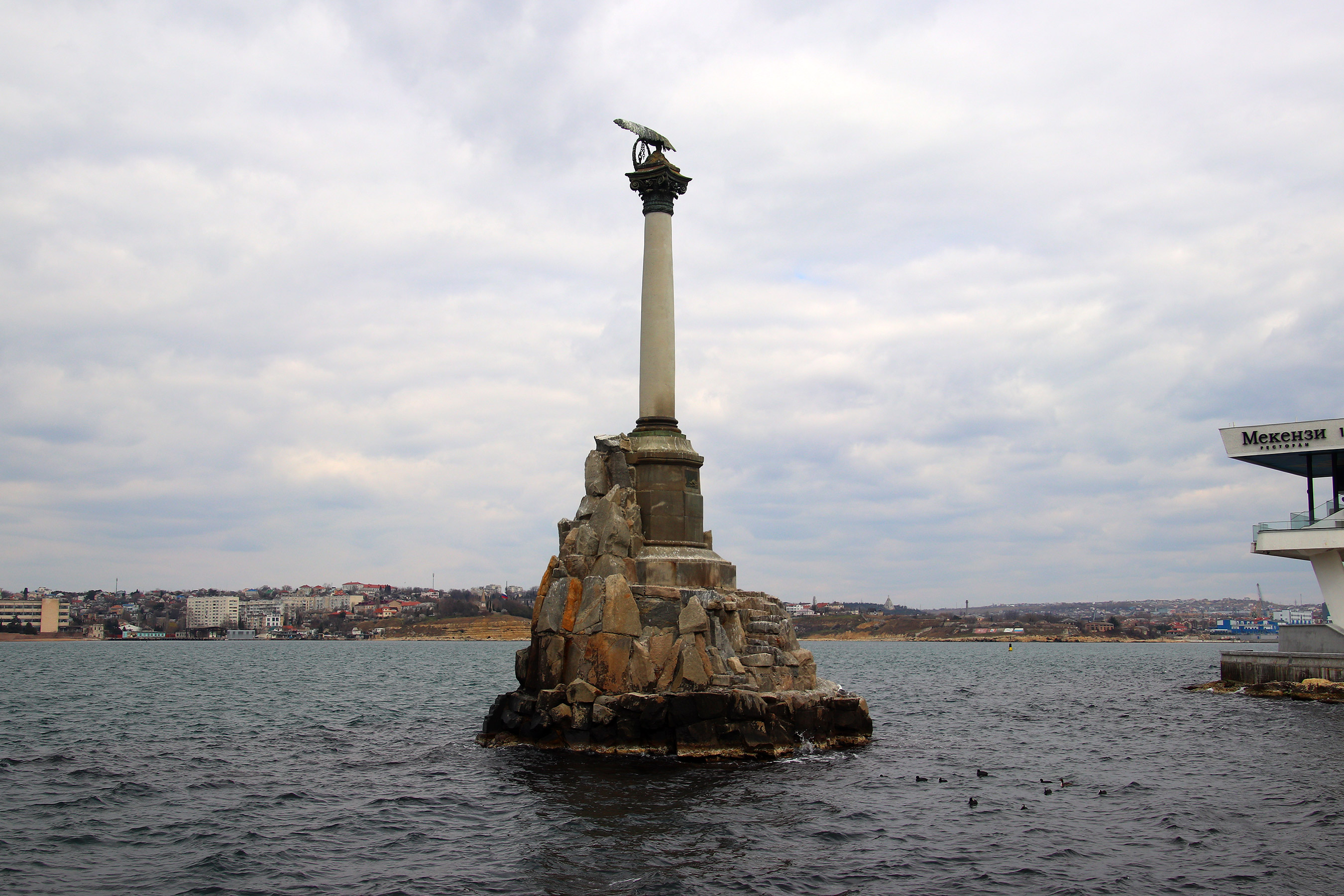 Памятник затопленным кораблям в пасмурный мартовский день