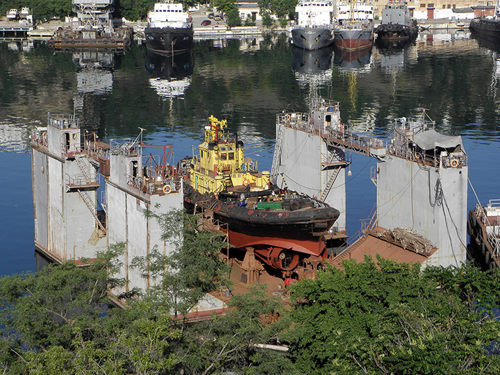 Буксир "Маяк" на доковании в плавучем доке в Южной бухте Севастополя