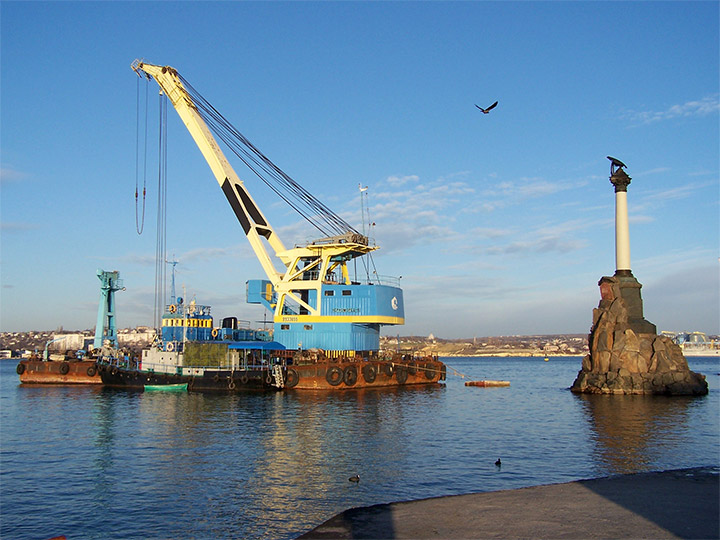 Плавучий кран "Черноморец-6" и Памятник затопленным кораблям
