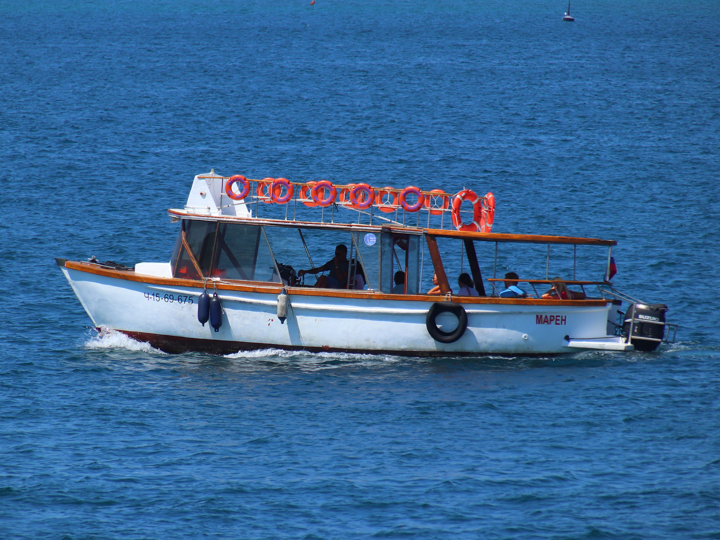 Экскурсионный катер "Марен" на ходу в Севастопольской бухте - вид на левый борт