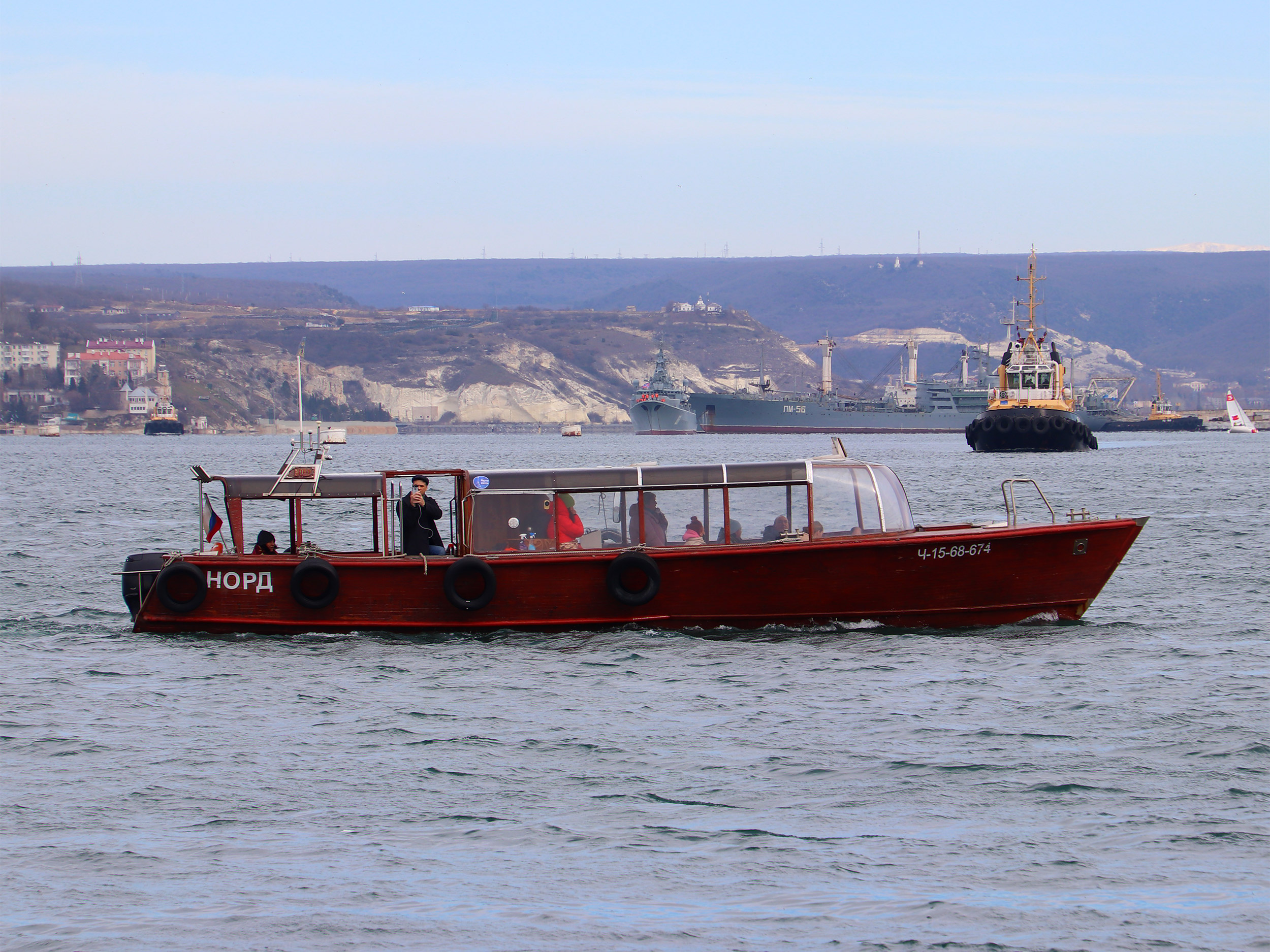 Экскурсионный катер "Норд" на фоне кораблей и судов Черноморского флота