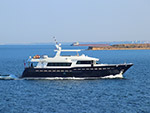 характеристики моторной яхты: водоизмещение 122 т, размерения 27,7х7х1,8 м, двигатели