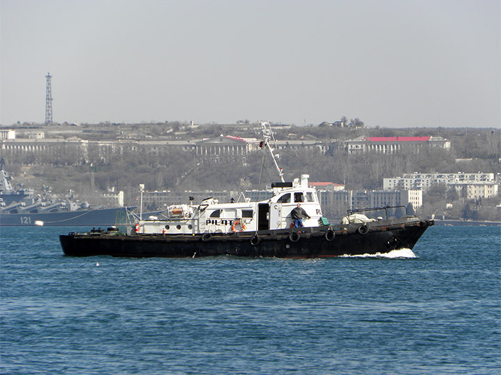 Лоцманский катер "Лоцман" на фоне боевых кораблей